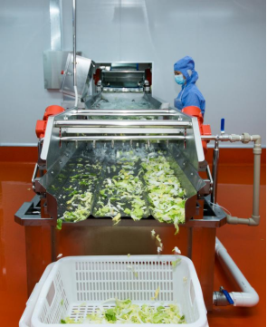 精益生产、规范作业 维乐科餐饮全面配置了先进的食材清洗与切片设备,并引入了自动化炊饭生产线,致力于构建一个集成化、高效能的一站式自动生产流水线。对合格的食材进行分拣和清洗,分拣和清洗完成后,进行人工切割、再根据菜品的需求运用自动化设备对食材进行切片切丁,以及二次清洗等一系列标准精加工步骤。切配完成后,再统一进行烹饪。