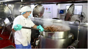 烹饪完成后的菜品,必须通过测温环节,确保菜品温度不低于80摄氏度。随后进入分餐线开展分餐工作。