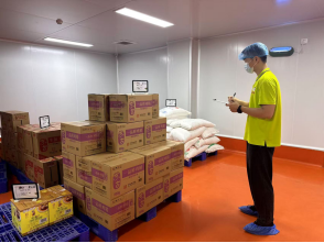 通过严格检测符合食用标准的食品,仓管人员将食品进行分仓、分区、分类,并采取离墙、离地的方式进行存储,同时,在每种食品对应的位置摆放标签,清晰标注食品的名称、生产日期、生产批号。每批次入库的食品均在一周内完成使用,以保障食品的新鲜与安全。